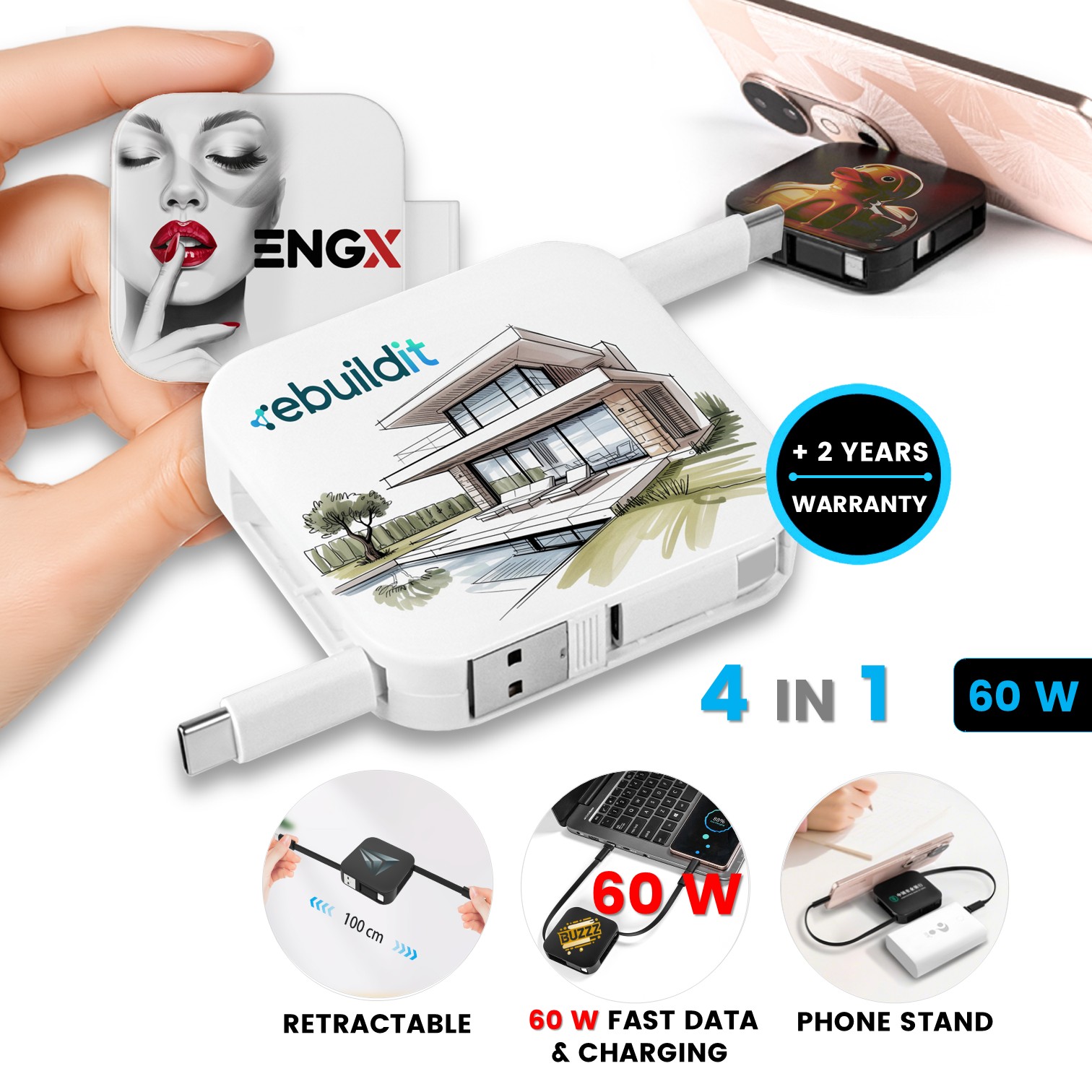 60 W – data and charging cable with stand (4-in-1), self-retracting