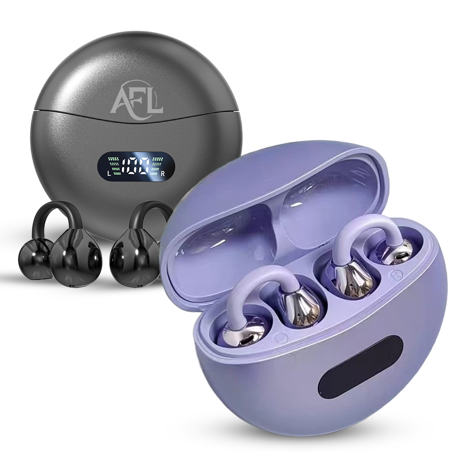 Sport clip-on earphones in charging case with display
