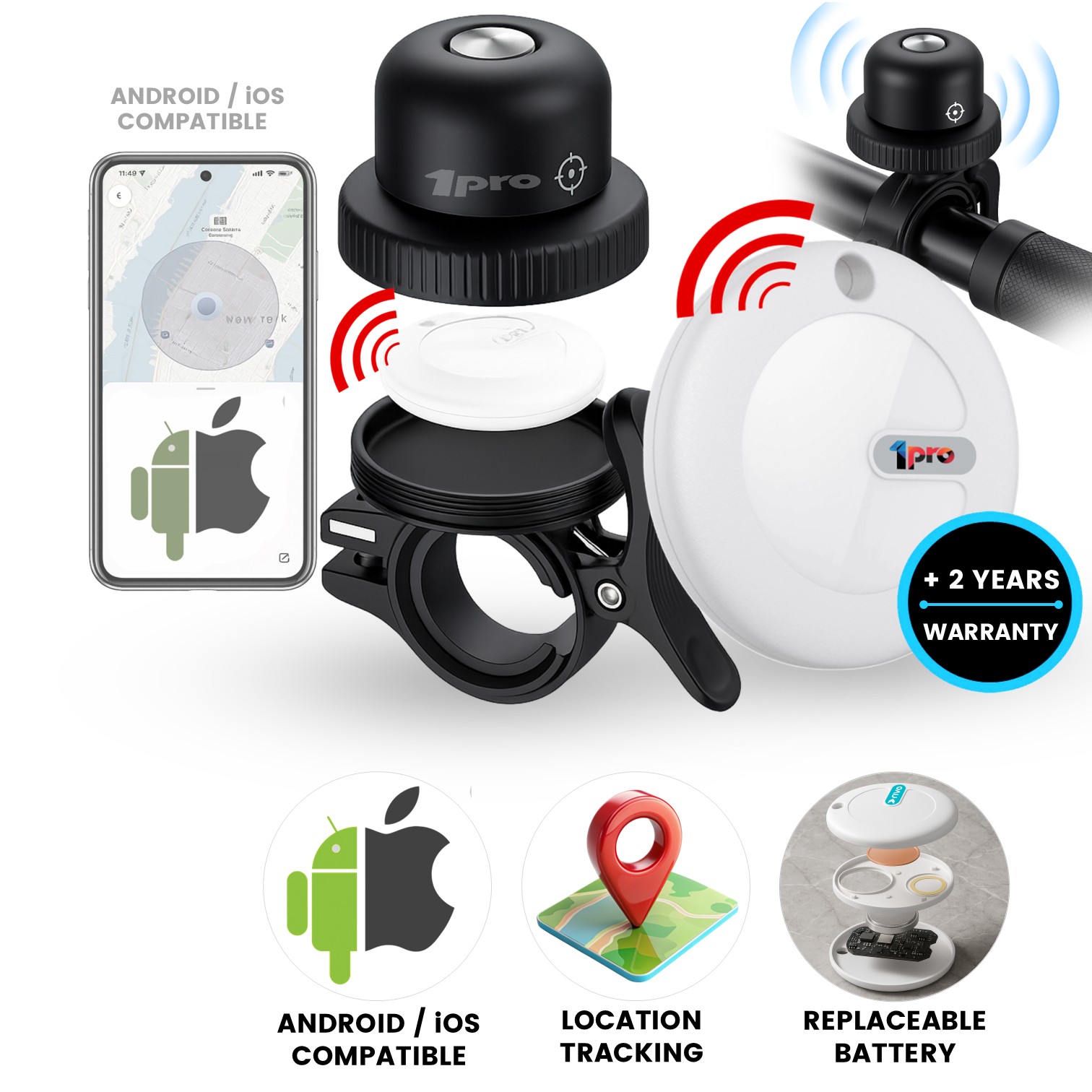 Bike bell with integrated TagMate tracking tag, compatible with iOS and Android