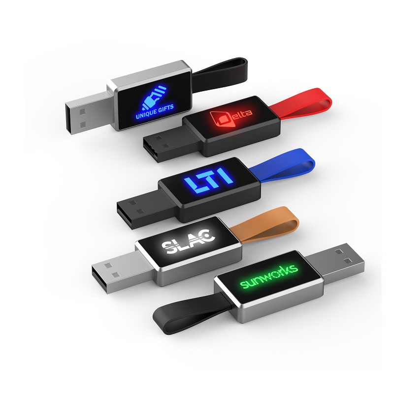 Mini metal USB 2.0 / 3.0 flash drive with LED logo and silicone strap